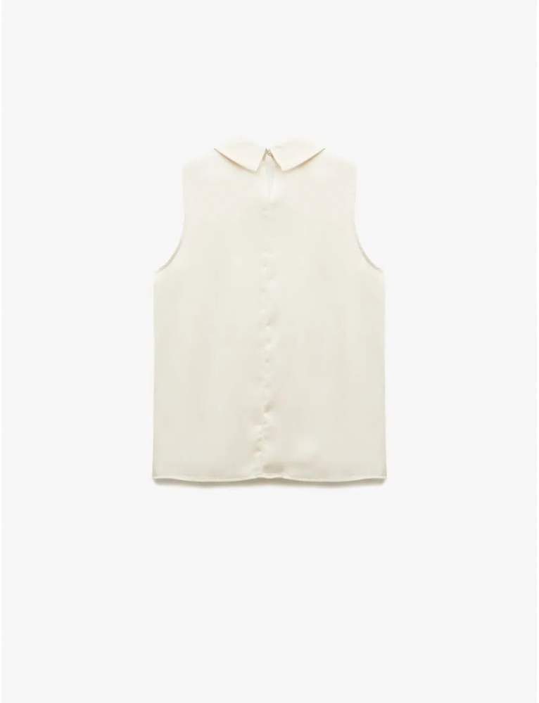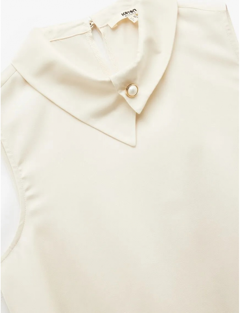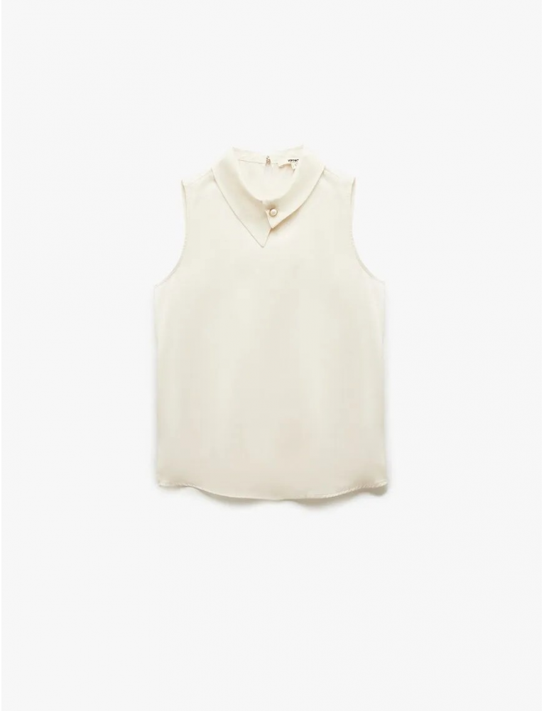 Asimetrik gömlek yaka bluz, kolsuz tasarımı ve asimetrik yakasıyla modern ve zarif bir şıklık sunuyor. Saten kumaşıyla parlak ve şık bir görünüm kazandıran bu bluz, rahatlığı ve stili bir arada barındırıyor. Ofis ortamı ve özel davetler için ideal olan bu tasarım, sofistike duruşuyla her kombine fark katıyor. Metal aksesuar detayları bluzun zarafetini artırıyor.