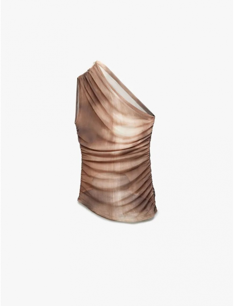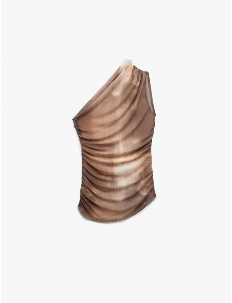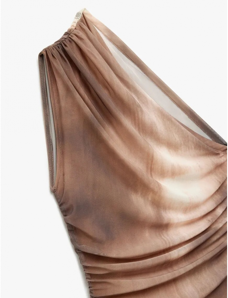 Koton X Sima Tarkan - Slim Fit Drape Detaylı Batik Desenli Tek Omuz Bluz